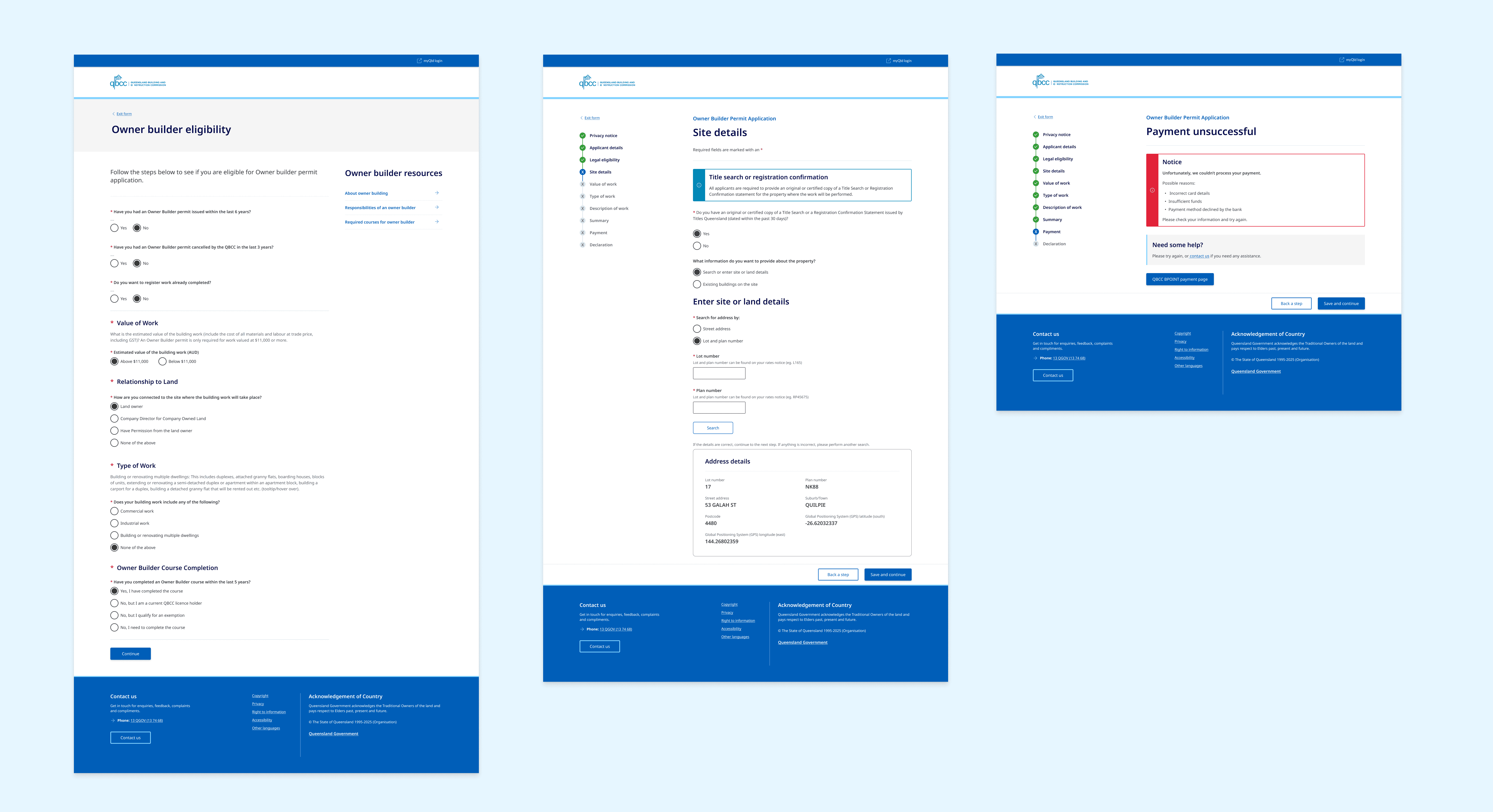 Changing the AI modal from default to Claude modal and connect Figma Make to the existing QGDS UI Kit changed the game. A large, documented design system now powering the prototype with correct paddings, behaviours, and components. Within 3 key pages, I had 20 more iterations aligned with the scenarios we wanted to test with customers.