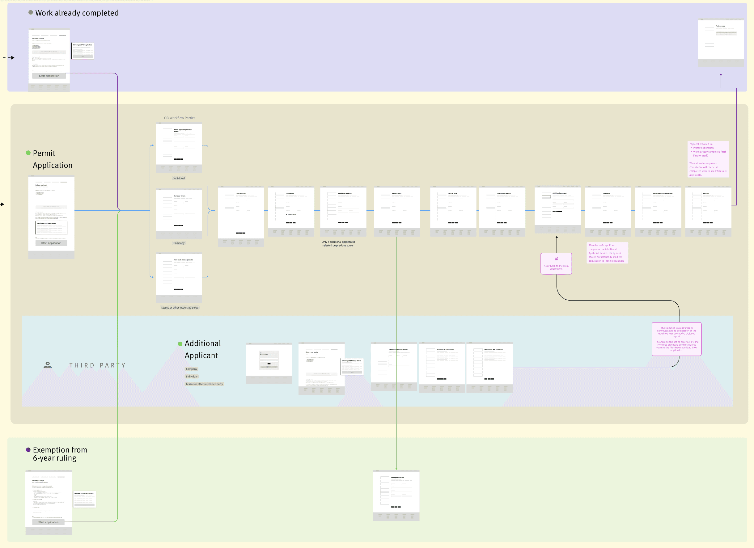 I moved to Figma to mature the planning into rough block sketches: low fidelity, fast, shareable. The point here isn't polish. It's alignment. Getting the business to say "yes, that's the journey" before investing time in anything detailed.