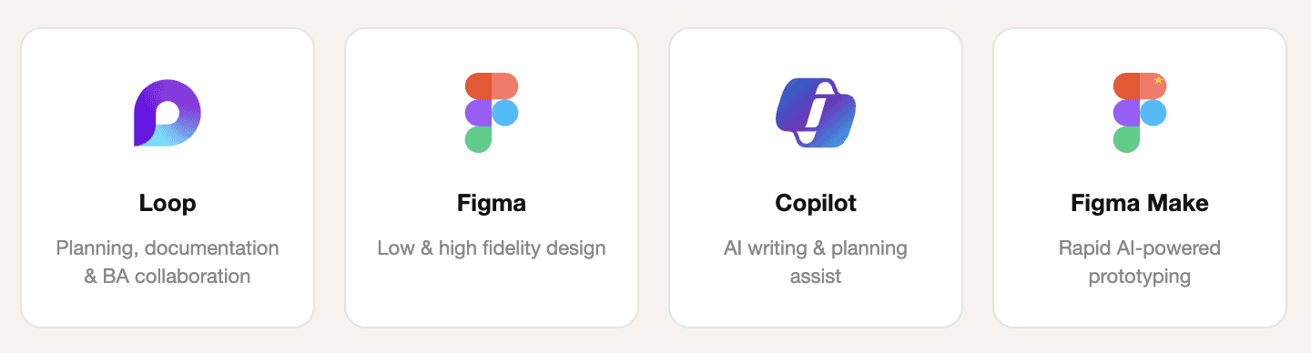 Before opening Figma, I opened a doc. I used Loop (Microsoft's answer to Notion) to map the work, collaborate with BAs and Project Managers in real time, and get aligned before anything visual happened. Copilot helped me structure and speed up the planning docs. Not glamorous. But this is where most projects actually win or lose.