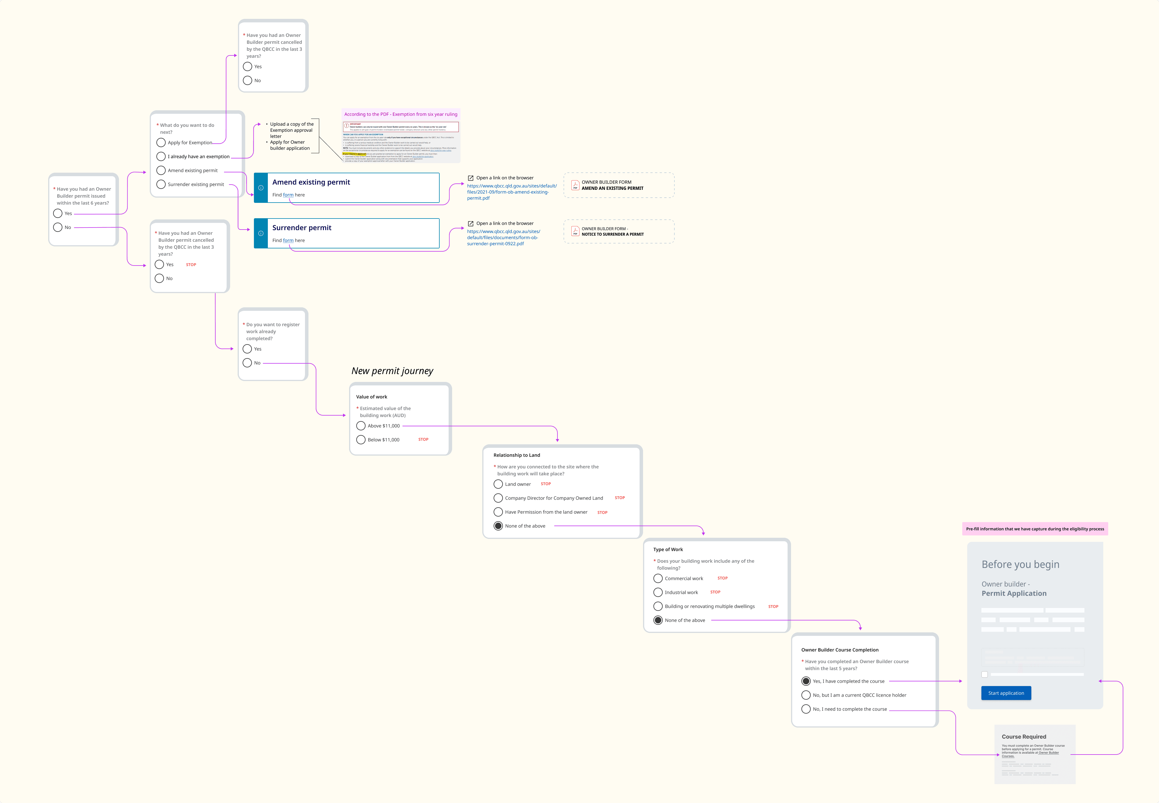 Each flow maps to a section of the original PDF, reframed for a digital step-by-step experience. The business can see themselves in it immediately because the content is already familiar.